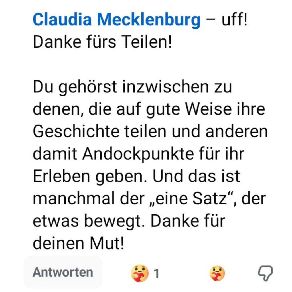 von Herzen Danke für deine Worte. Ja, es war ein schwieriges Jahr – besonders die ersten 6 Monate. Und dennoch will ich rückblickend nichts davon vermissen, denn es hat mich immens geprägt.